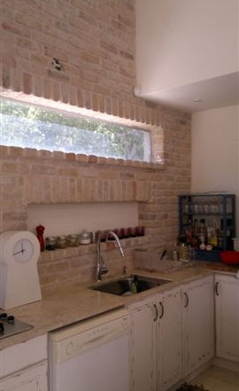בית פרטי בשרון בו נעשה שימוש בלבנים מדגם Antique Mix לחיפוי קירות המטבח לקבלת מראה טוסקני.