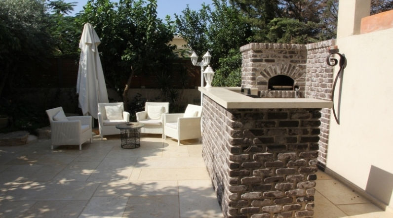 בית פרטי בשרון בו נעשה שימוש בלבנים מדגם Black Chocolat מסדרת הרטרו לחיפוי קירות חיצוניים ולחיפוי מבנה הבר והברביקיו.